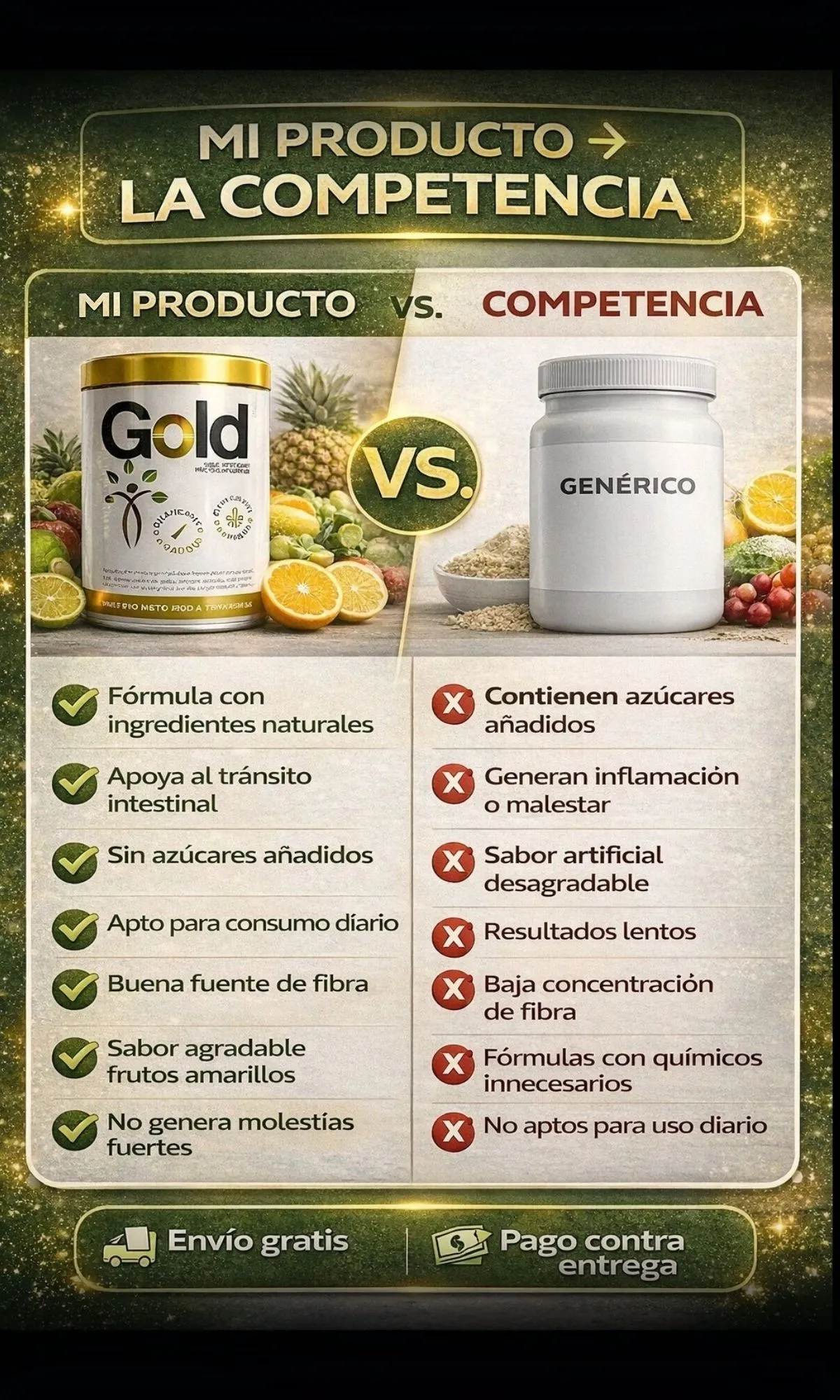 Sí, está elaborado con ingredientes naturales como linaza, papaya, pitaya, ciruela pasa, fibra de naranja, fibra de manzana y psyllium. No contiene químicos agresivos y es apto para consumo diario.